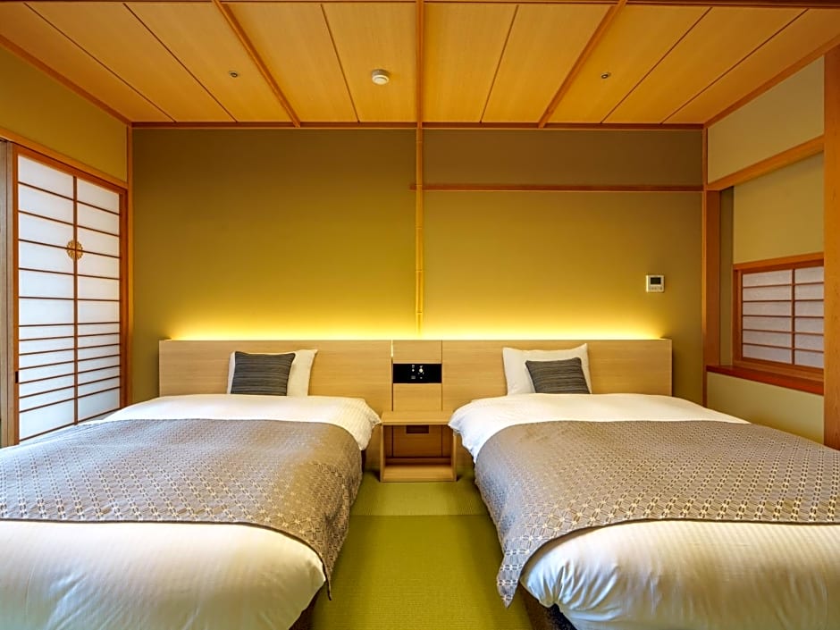 The twin room includes a private bathroom, well-fitted with a bath, a shower, a bidet, a hairdryer and slippers. The spacious air-conditioned twin room offers a flat-screen TV, tatami, a tea and coffee maker, a safe deposit box as well as sea views. The unit offers 2 beds.